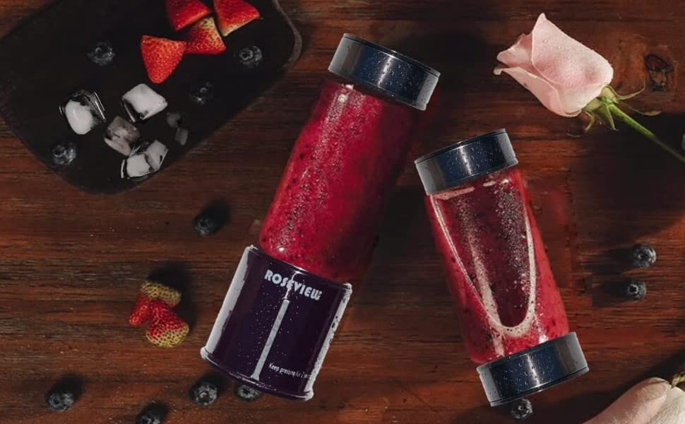 ROSEVIEW Blender Smoothie Portable for smoothies Glass bottle Mini USB rechargeable Handheld 2 speed battery powered hand blend Shakes Cup fruit juicer Cordless maker jet blend Mixer (CA, Stainless)