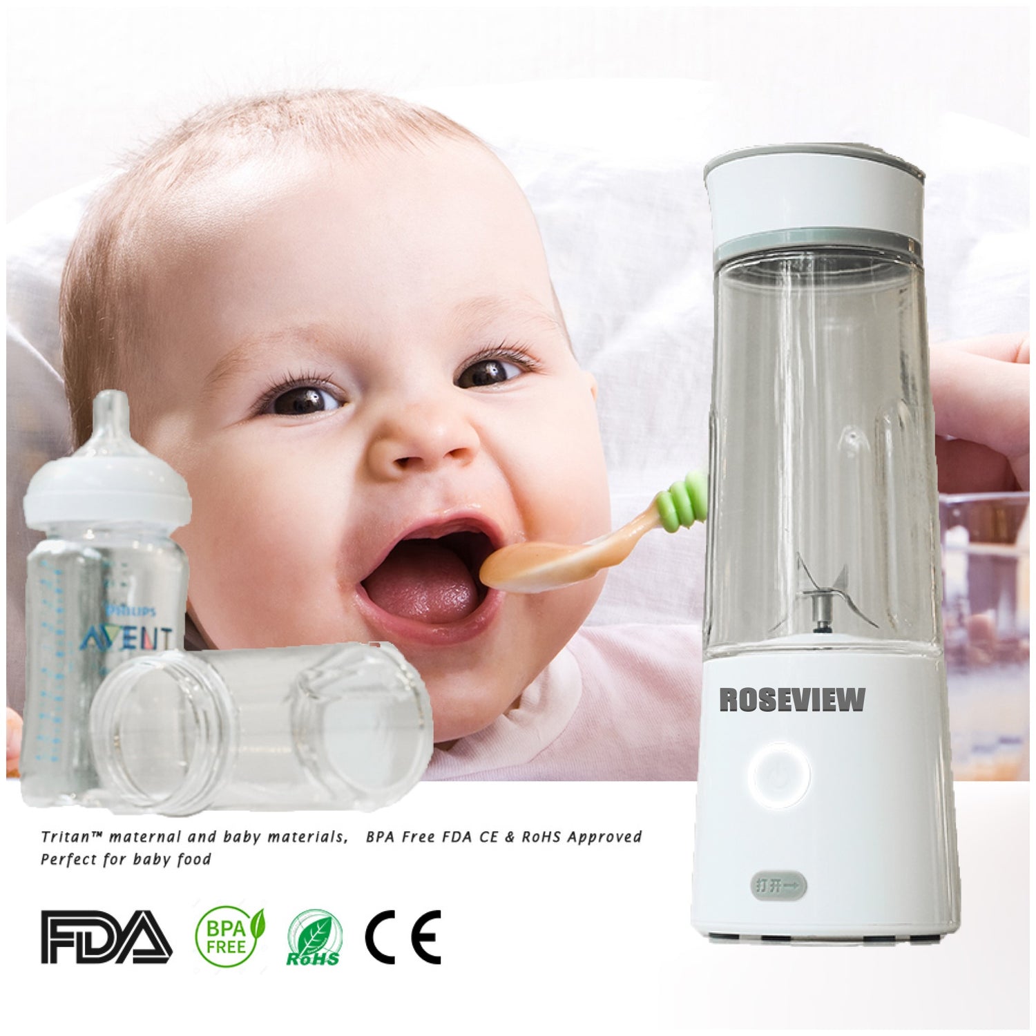 ROSEVIEW Blender Smoothie Portable jet blend smoothies Glass bottle Mini USB rechargeable Handheld 2 speed battery powered hand Mixer Shakes Cup fruit juicer Cordless maker (US, White)